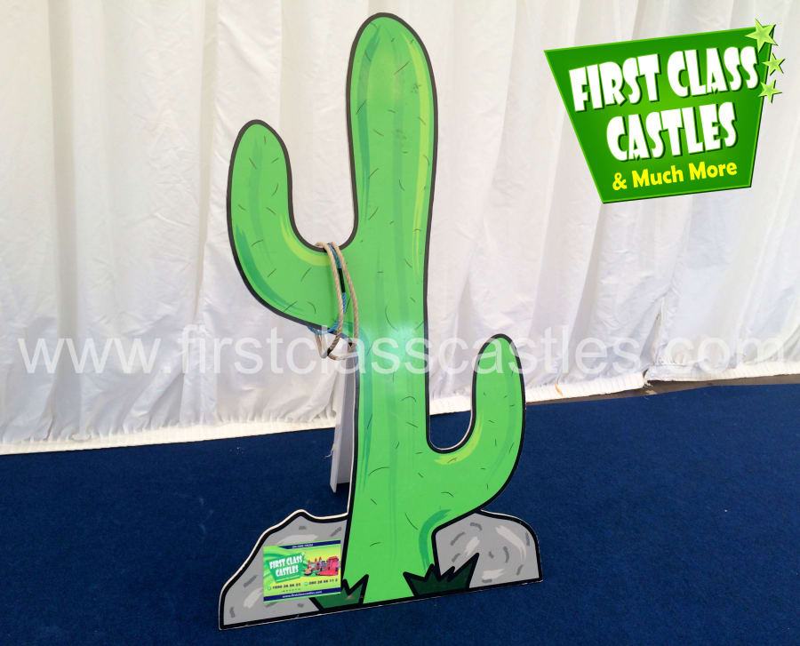 Description: The aim of the game is to throw three rope rings, one at a time from a distance and to have them land securely around the cactus without falling off. It really is harder than it looks, but great fun. This game is a great addition to a Wild-West themed event.