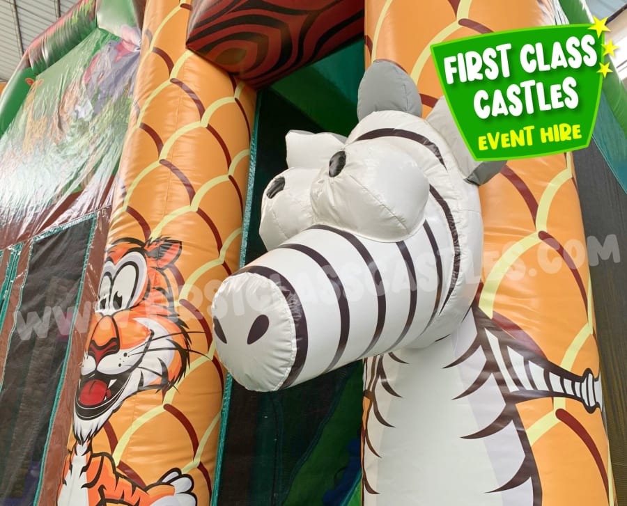 Welcome to the Safari Park – a wild adventure packed into one incredible inflatable! Measuring 19ft (L) x 19ft (W) x 16.5ft (H), this impressive 3-in-1 jungle-themed unit offers bouncing, climbing, and sliding fun all in one vibrant, fully enclosed inflatable. Exclusive to First Class Castles, this unit is a favourite for larger garden parties, school fun days, and family celebrations.