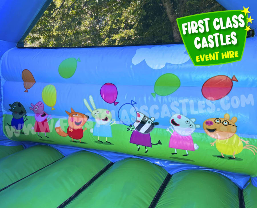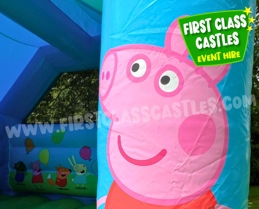 Jump in muddy puddles of fun with our adorable Peppa Pig Playhouse – a colourful, fully licensed inflatable perfect for little Peppa fans! Measuring 15ft (L) x 12ft (W) x 10ft (H), this compact bouncy castle with front slide is ideal for narrow gardens, small outdoor spaces, or indoor venues.