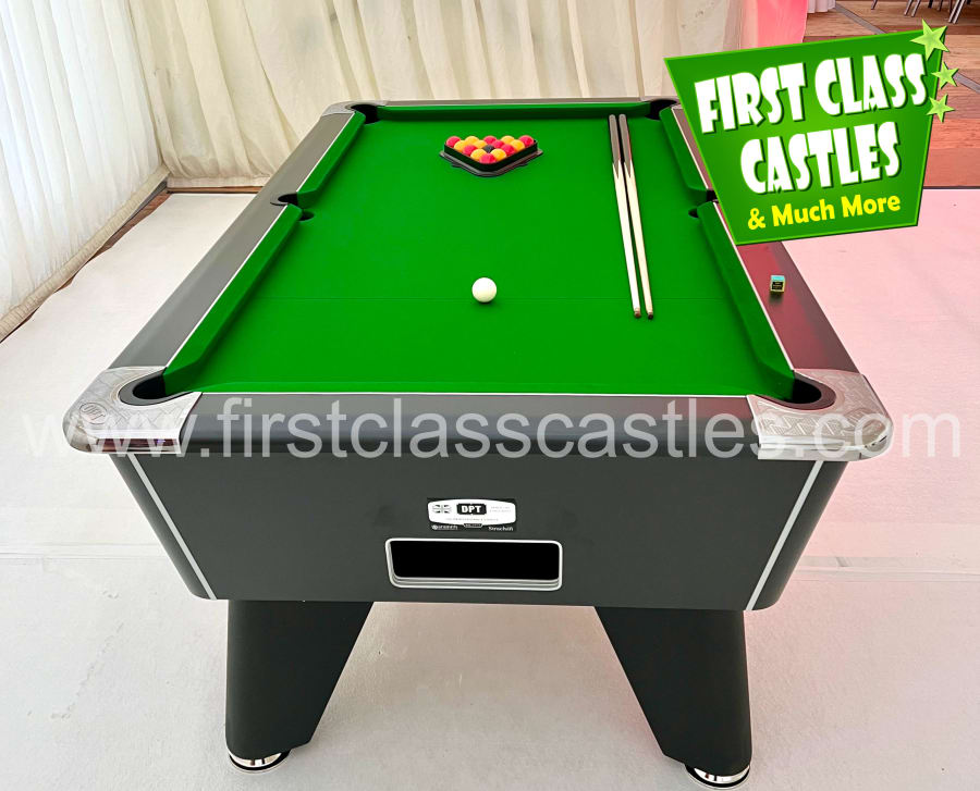 Description: First Class Castles are delighted to present our real slate bed pool table measuring 7ft X 4ft, the perfect size for event hire. Our Pool Table Event Game hire service and other game tables are perfect entertainment solution for all a games area, recreation zone break-out areas or corporate chill spaces. These games tables can be used indoor or outdoors under cover.