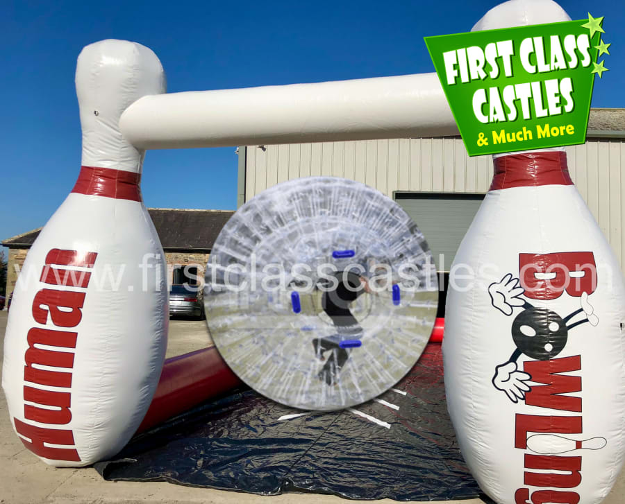Description: Ever wondered what it feels like to be a bowling ball? The Human Zorb Bowling ball is actually a 2m Zorb Ball that you're safely secured inside and sent racing down the themed bowling inflatable track provided to knock the Skittles. Human Bowls are an adrenaline game, high energy and suitable for players of all ages. Create a real stir at your event with this amazing attraction. Exclusive to EventBase.... a super cool product (we even used it for our own party recently!).