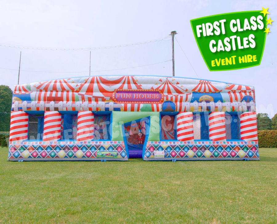 Introducing a first for Ireland, a fully branded 'MEGA MAZE' in a stunning Carnival / Fair Them, bright & colourful designed to compliment out extensive Carnival Game range. Looking to add some unique excitement and fun to your event or party? Look no further than our Carnival Funhouse Mega Maze (CAR13)! This incredible inflatable attraction is perfect for corporate entertainment, parties, large scale events and school fairs. The inflatable maze is the latest in our Carnival Games hire range that can easily be added as a fun indoor or outdoor activity to any event with sufficient space. The game makes a big visual impact, especially for children, who are often entertained for hours simply by running around the labyrinth and taking in all the imagery and colours. Internally our maze differs from any others available in the marketplace as it's fully branded with scenes both internally & externally. The exterior is branded like an all-time Carnival Classic 'The Funhouse'! This can also be used a part of a Spooky Maze activity for Halloween themed events. This GIANT Mega Maze Inflatable is a showstopper and will bring the thrill of the fair right to your event venue or doorstep. 🎪🎉