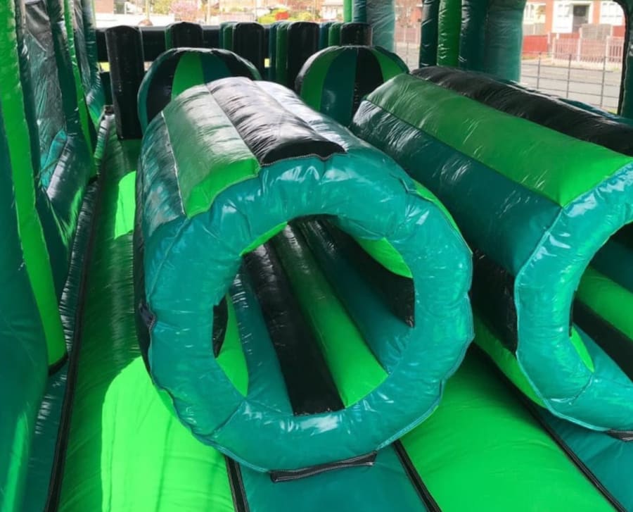The whopping great obstacle course incorporates an up and over slide, biff and bash, and bouncing area, hurdles, whackers, biff and bash posts, mini humps, obstacle humps, crawl through tunnels and much much more!. Make your day with this unique, action-packed obstacle section. The inflatable obstacle course offers a safe entrance way, followed by a random series of obstacles including a series of biff and bash pillars, cool chill out area in the middle, hurdles and finishes with an adrenaline fuelled 10ft platform slide at the end. The obstacle course is the perfect choice for any children or adults event.