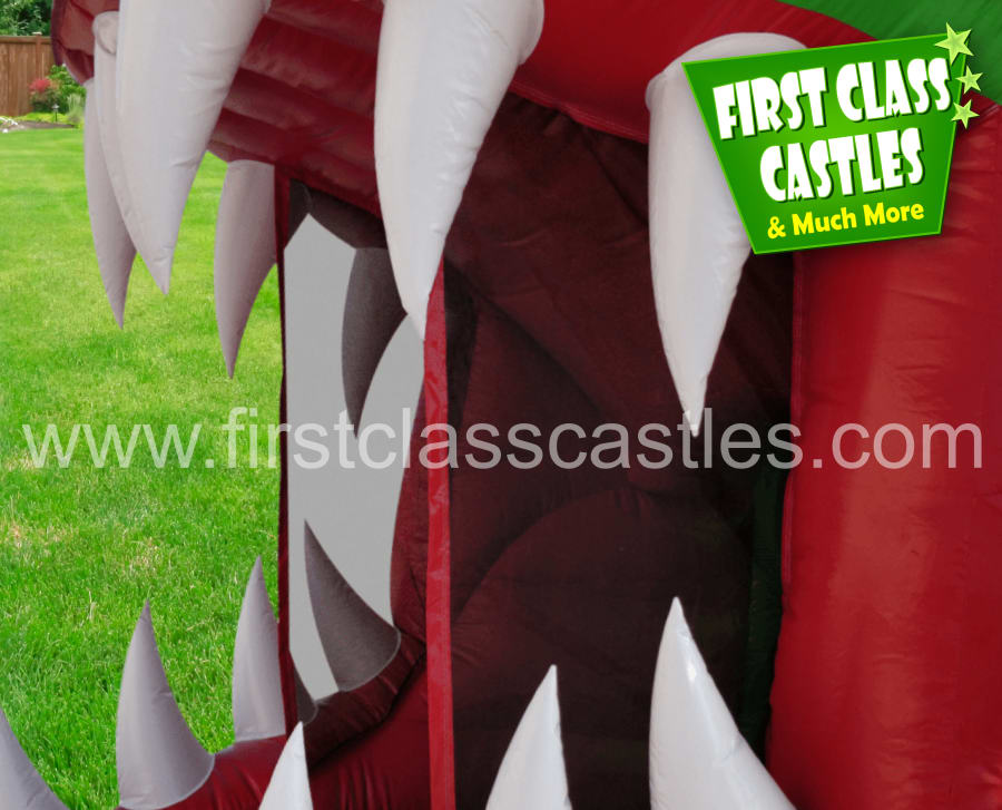 Description: Introducing the all new "Dino Rex" Obstacle Course, 40ft(L) x 15ft(W) x 12ft(H) large 3D digitally printed scaly Crocodile themed Obstacle Course. Imagine the look on your kids faces as this huge two section Crocodile is inflated at your venue. Suitable for any age group. Consists of climbing, crawling and sliding areas. Really impressive and large scale unit for any event, you will be gobsmacked by the sheer scale of it. This item is perfect kids activity to compliment any Jungle, Reptile, Jurassic or Zoo Themed event.
