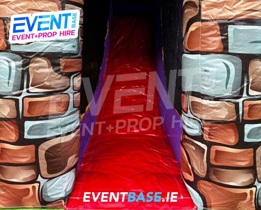 Roll up, roll up! The Circus Castle 3-in-1 Combo brings all the fun of the fair to your party or event. Featuring bold carnival colours, themed artwork, and a classic turreted design, this inflatable looks like a real castle and offers three activities in one – bouncing, climbing, and sliding, plus a bonus basketball hoop on the side.