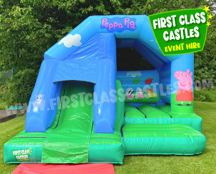 Jump in muddy puddles of fun with our adorable Peppa Pig Playhouse – a colourful, fully licensed inflatable perfect for little Peppa fans! Measuring 15ft (L) x 12ft (W) x 10ft (H), this compact bouncy castle with front slide is ideal for narrow gardens, small outdoor spaces, or indoor venues.