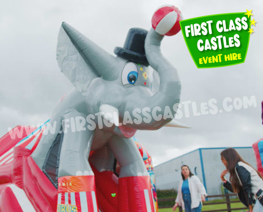 Roll up, roll up! Add a big splash of circus magic to your next event with our exclusive Circus Elephant Combo – a custom-designed inflatable available only from First Class Castles. Dimensions: 18.5ft (L) x 13.5ft (W) x 13ft (H)