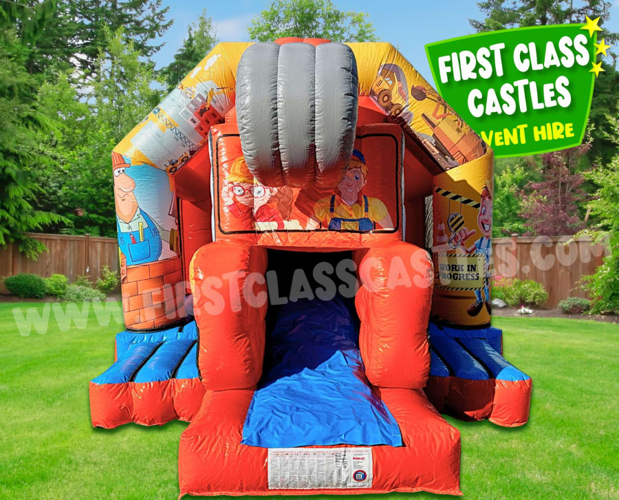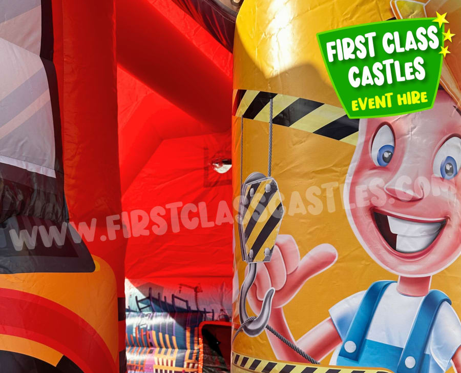 This fully themed bouncy castle and slide combo is packed with bold artwork and realistic 3D digger detailing — including a bucket-shaped slide that looks just like the real thing.
