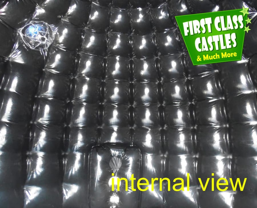 Description: 20ft(L) x 17ft(W) x 14ft(H) Trendy Purple & Blue Inflatable Dome with Bouncy Floor.... Why Hire a DJ when you can hire this? Neutral theme without any childish artwork, suitable for kids of all ages. This dome is easy to access for all ages as there are no squeeze doors. The dome is fitted with a Bluetooth enabled music system, meaning your guests can connect their phones to send music to the Bouncy Castle! How Cool! The dome is also fitted with a flashing lighting system, which is reflected off the gloss black interior, bouncing the light all around the dark chamber. The exterior high multi-coloured roof is a sight which will be seen all around with a huge visual impact.