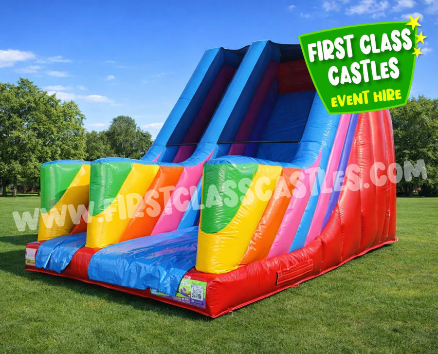 Make a serious statement at your next party or event with our 22ft Neutral Multicoloured Bouncy Slide – a stunning, high-impact inflatable that delivers maximum fun in a compact width.