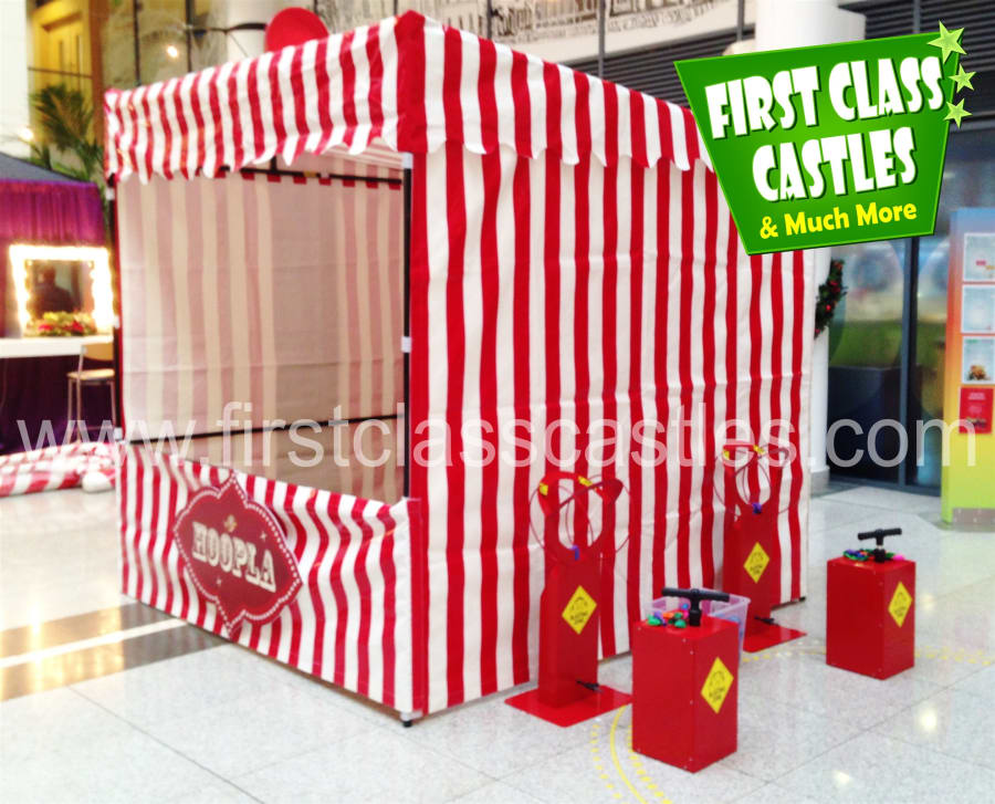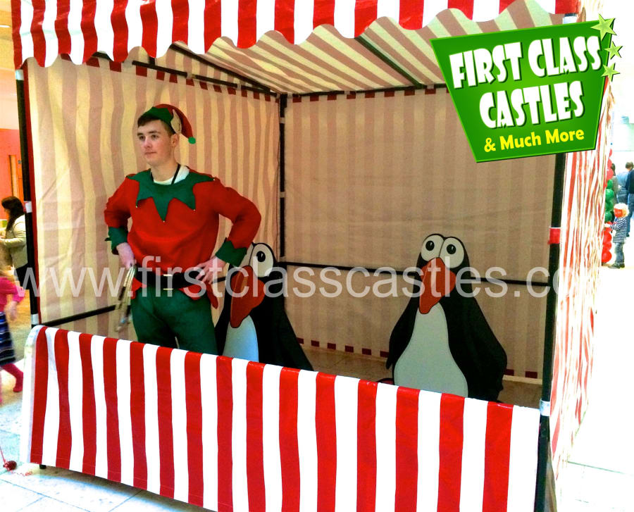Description: Our selection of Carnival Stalls make for a fantastic addition to any Christmas Event. The traditional appearance of the red and white striped surround make for a stand out piece of fun equipment. Featuring festival carnival and funfair games such as Lassoo the Reindeer, Penguin Hoopla, Pudding Shy & Snowball Toss. We can also create customised games to fit in with your event theme. People of all ages can take part and have a fantastic time as they take on the fun challenge that each stall has to offer. These stalls add a fantastic visual and carnival feel to any event and can be installed indoors or outdoors. We have four stalls available to hire.