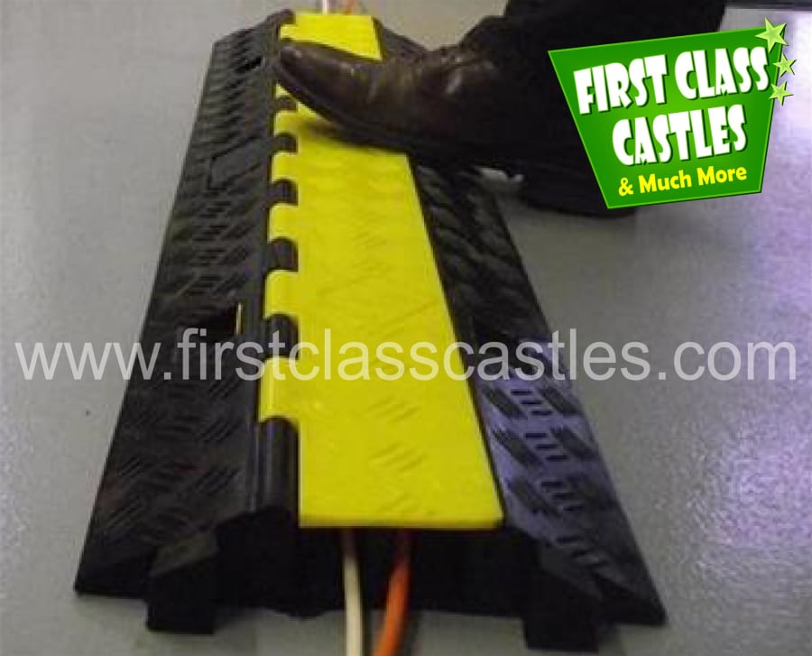 Description: Safety Cable Ramps with internal casings for hire, don't take any risks by having exposed cables and trip hazards at your event. These cable ramps contain 3-channel polyurethane (PU) cable bridge.