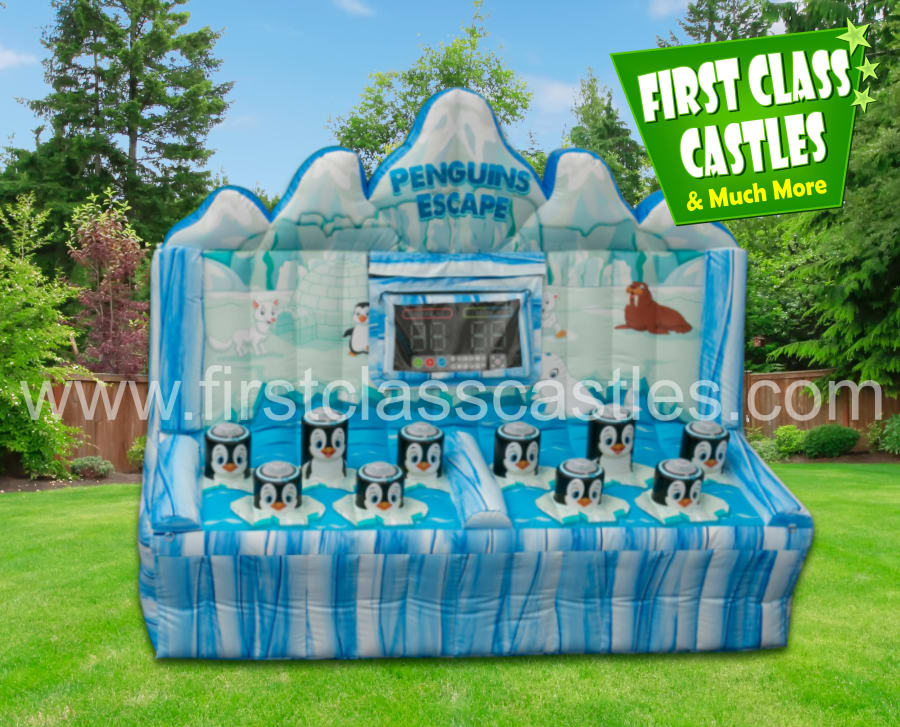 Get ready for a whole new level of excitement with our Penguin Escape Game. This 2-player inflatable game brings the classic whack-a-mole concept to life in a winter-themed setting. It's the ultimate interactive game that will keep your guests entertained for hours!