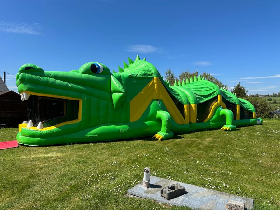 Add a bold, high-impact attraction to your hire fleet with this 50ft 3D Crocodile Inflatable Obstacle Course, now available for sale from First Class Castles. Featuring an eye-catching crocodile theme and a long, action-packed obstacle run, this inflatable is a proven crowd favourite for fun days, school events, festivals and corporate family days across Ireland.