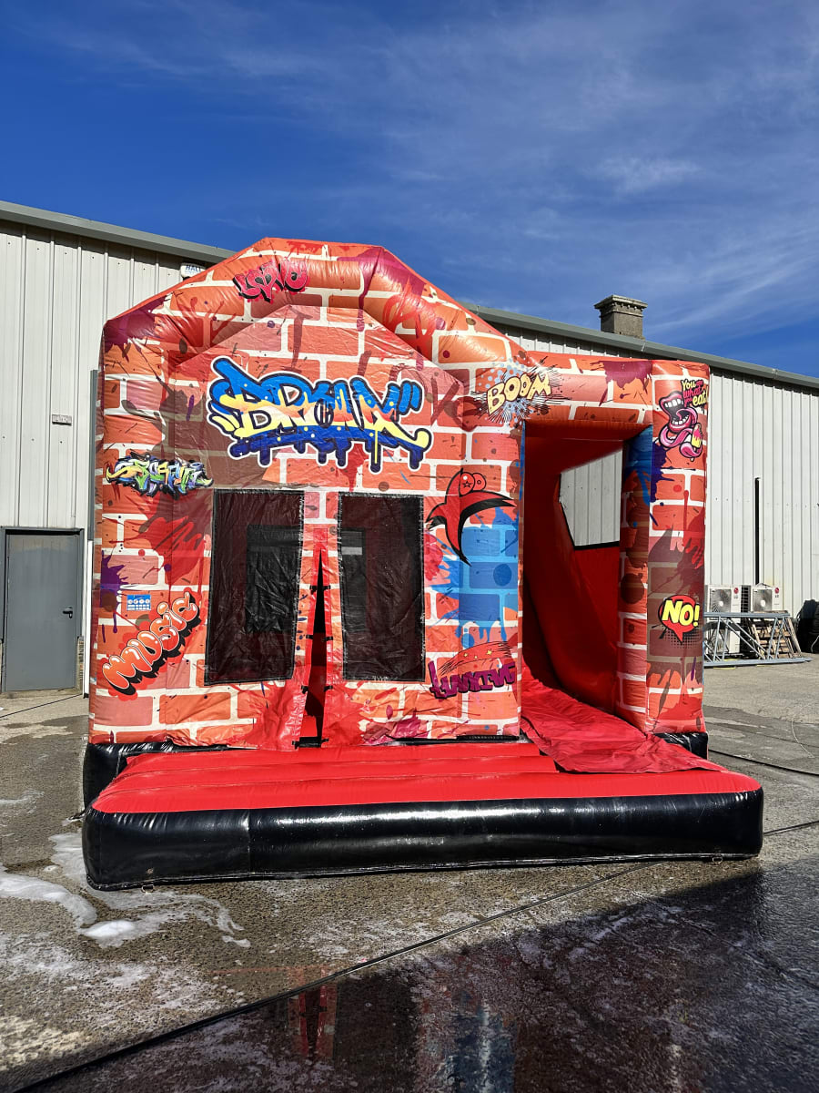 Inspired by a vibrant graffiti theme, this eye-catching inflatable stands out at any event and appeals to both boys and girls. The clever 3-in-1 design combines a large bouncing area, internal climbing section and exciting slide, making it far more engaging than a standard bouncy castle and a great choice for hire companies looking to maximise bookings.