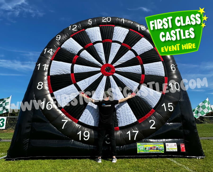 This unique activity has grabbed a lot of attention on social media. Our cutting-edge inflatables offer a fantastic fusion between football and darts, two of the nation's favorite games. Foot Darts & Target Shootout are colorful, fun, vibrant, and accessible for all. Kids, youths, and adults alike can all 'step up' to our giant games and try their pot luck.