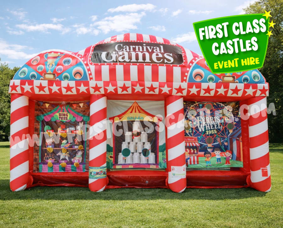 Perfect for corporate entertainment, school fairs, community fundraisers, and private parties, this vibrant inflatable stall offers three classic carnival games in one impressive attraction: