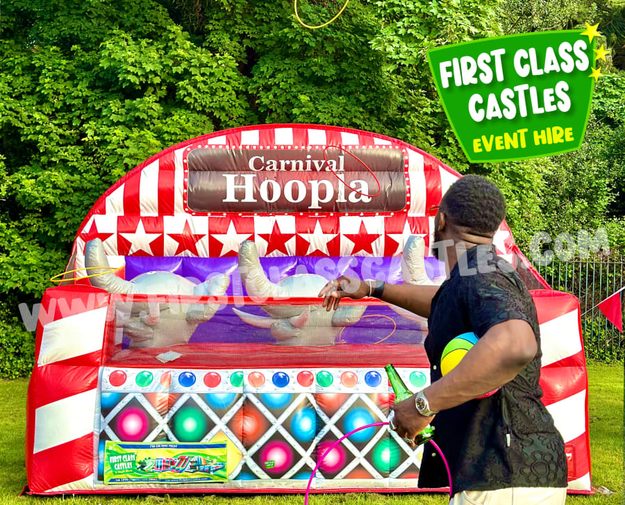 Step right up for all the fun of the fair with our Carnival Elephant Hoopla Games Stall (CAR08)! This inflatable carnival game is perfect for events, corporate parties, and school fairs in Dublin, Waterford, Wexford, Cork, Tipperary, Wicklow, Meath, Kildare, Galway, and Limerick. Nationwide delivery in Ireland. 🎪🐘