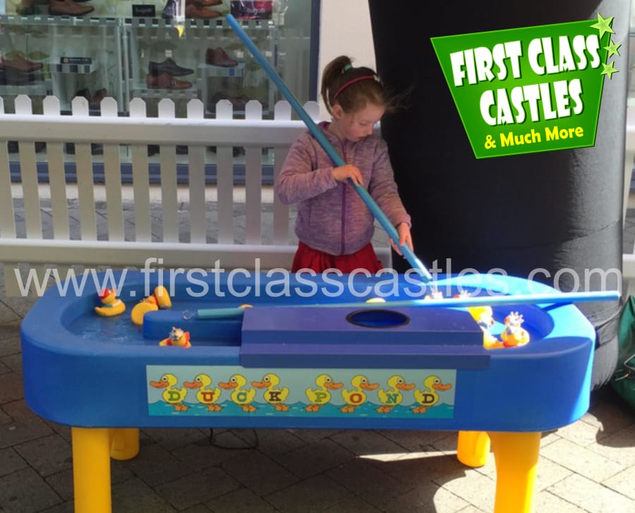 Description: Check out our cool 'Duck Pond' game with current and watch the rubber ducks (provided) whizz around the water course in front of your eyes. The aim of the game is up to ten players select a duck and drop it into the water course. Each duck has a number from 1-10 on the base of their body and each player is assigned a numbered duck. The winner is achieved by seeing who's duck finishes first after a given time frame, as the winning duck is plucked from the finish point. Remember there is a current flowing in the duck pond and the ducks move quite quickly. The winner is generally a surprise, as nobody knows who's number is on the duck's body... do you think you could keep track of your duck throughout the game? This product is great within one of our Carnival Stall Tents.
