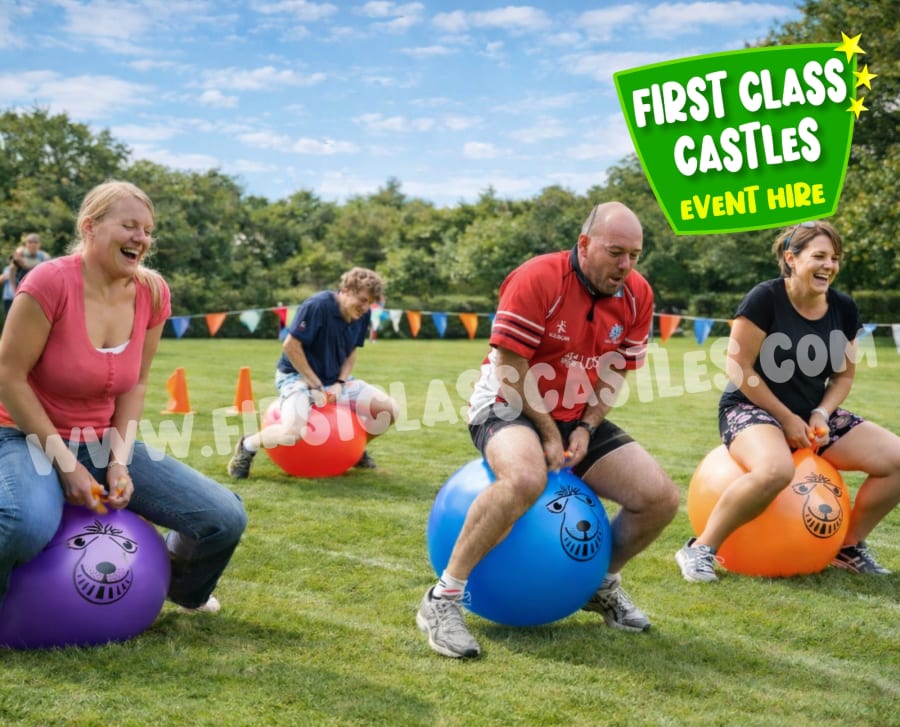 It’s a bright rubber ball with two sturdy handles – you sit on it, hold tight, and bounce your way to victory (or fall over laughing!). Ideal for parties, school sports days, festivals, and especially corporate fun days where a bit of silly competition goes a long way.