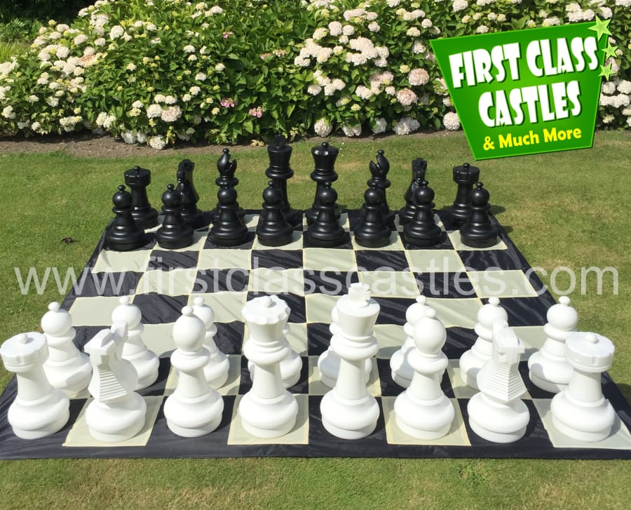 Description: The game of Chess is over 1,300 years old. First Class Castles can offer you a giant version of the regular board game, suitable for indoor or outdoor use. This is a two player game, played between two opponents of opposite sides. A great novelty piece and ideal for both children and adults. Add this to you order today.