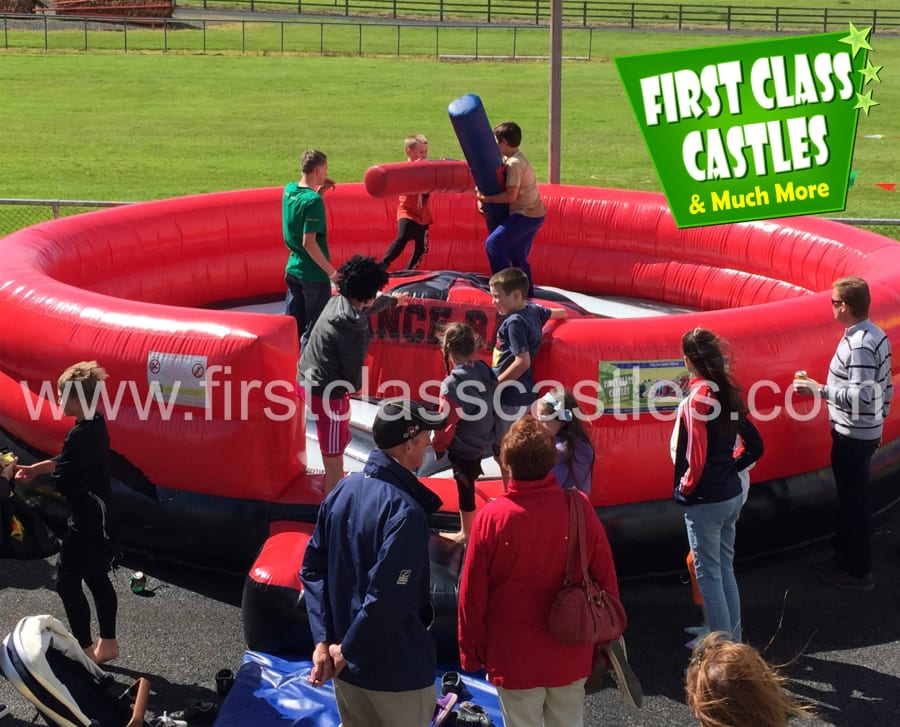 The Inflatable Ultimate Gladiator duel hire can be hired on its own or as part of a package of challenging inflatable games such as the Climbing wall, Base jump, Bungee run, whack a mole, sumo suits and obstacle course hire ect to make the perfect challenge event for all, making it perfect choice for fun days, team building events, gala's, fundraisers, motoring events, exhibitions, corporate giveaways, summer balls, corporate gathering, it's a knockout inflatable day or for any event where team motivation and high spirit is wanting to be achieved. The duel is also very well placed at both Children's and adult parties alike, making it the perfect birthday party idea.