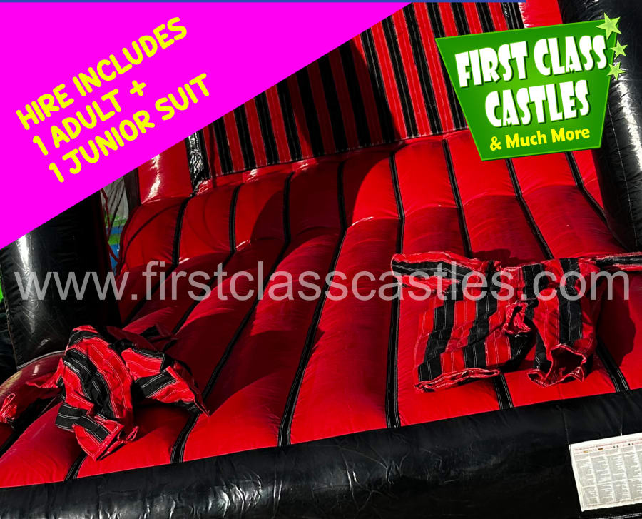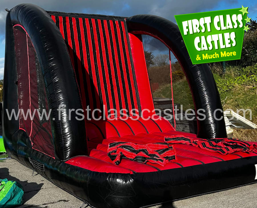 The aim of the game is to go head to head against your opponent in this vertical climbing challenge of bravery and determination. The winner is the person who can bounce and stick the highest point of the velcro wall... If they can make it at all that is. The challenge seems harmless at first but soon becomes a real challenge of skill, whit, speed, timing and determination. Its fantastically competitive and will leave guests queuing for more time and time again.