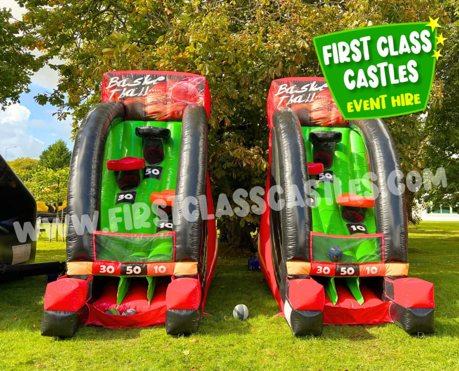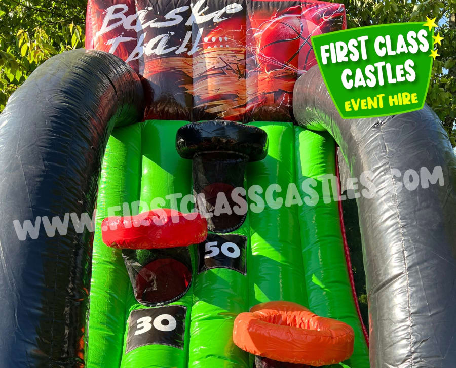 Perfect for races, team battles, and crowd interaction, this double-width basketball shootout allows two players to compete side-by-side, aiming for the highest score or most baskets within a set time.