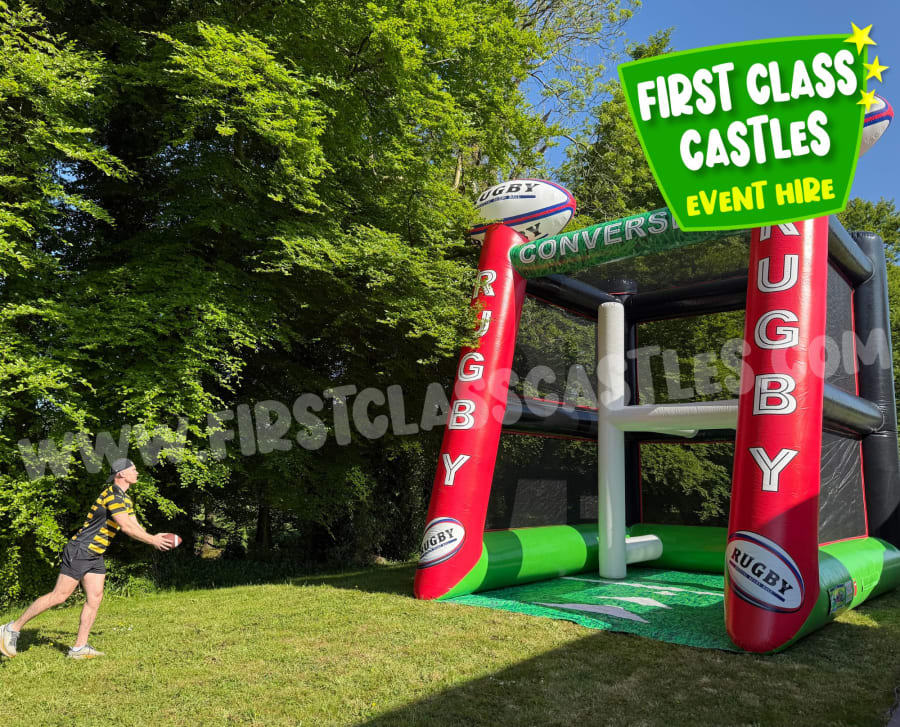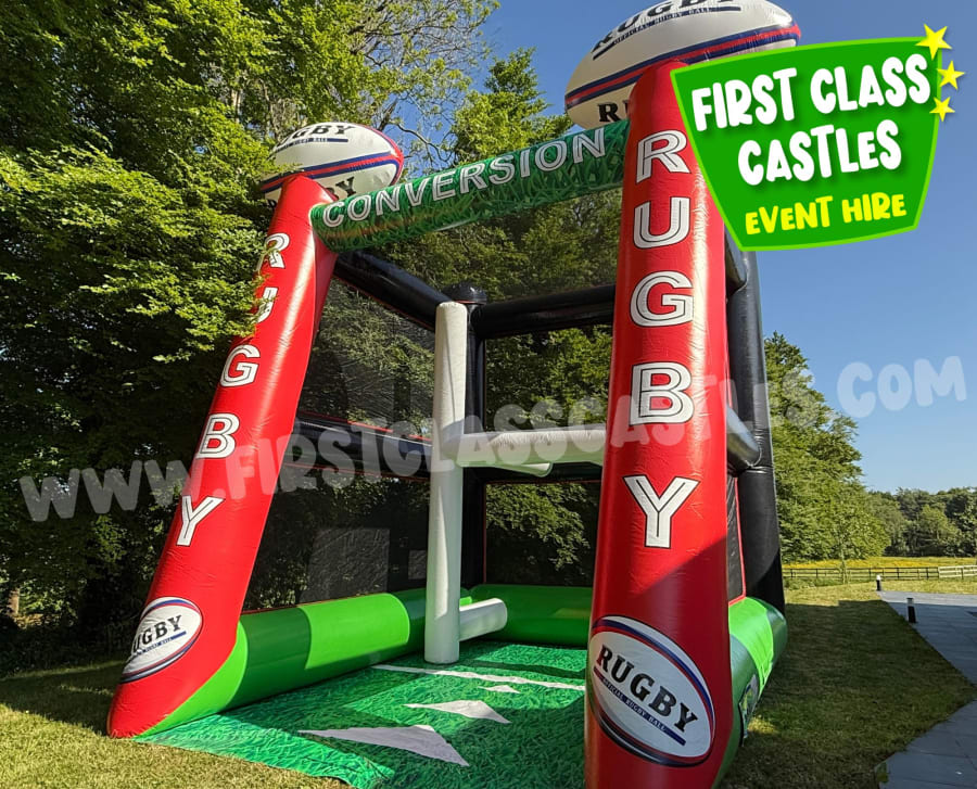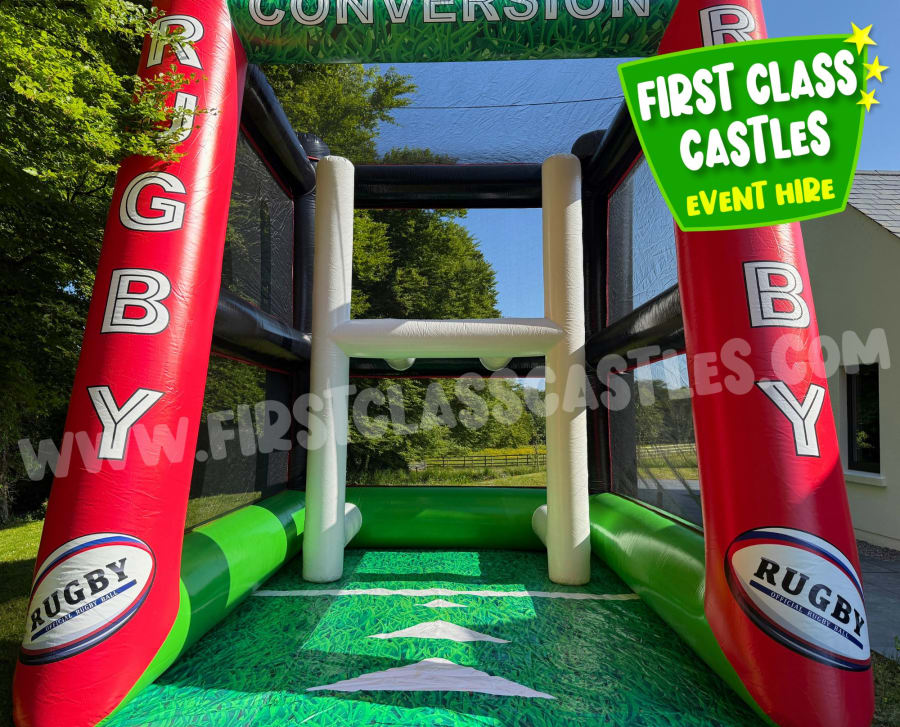 Looking for the ultimate rugby-themed attraction for your next event in Ireland? Introducing 'Rugby Conversion', a spectacular inflatable penalty shootout game exclusively from First Class Castles. This larger-than-life rugby game promises excitement, fun, and competitive action that's perfect for drawing crowds and creating unforgettable memories!