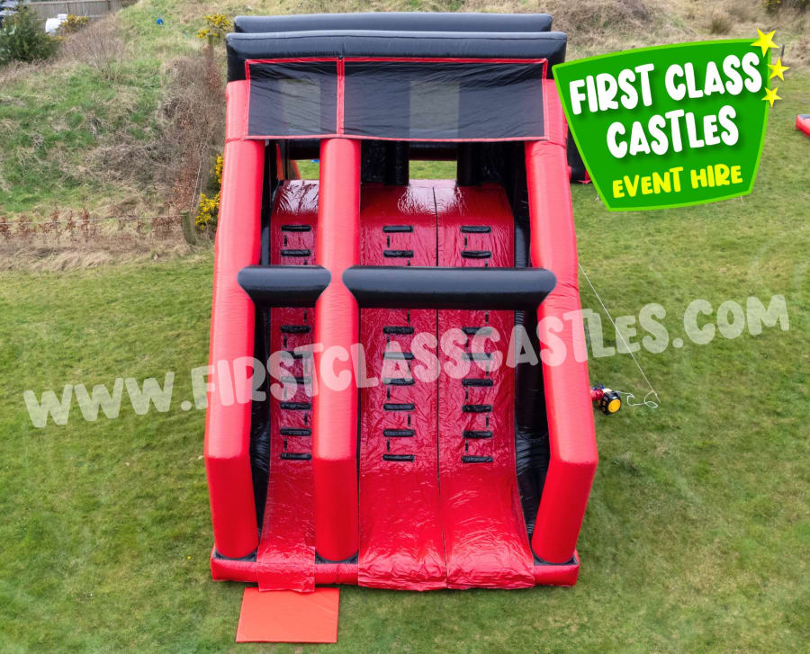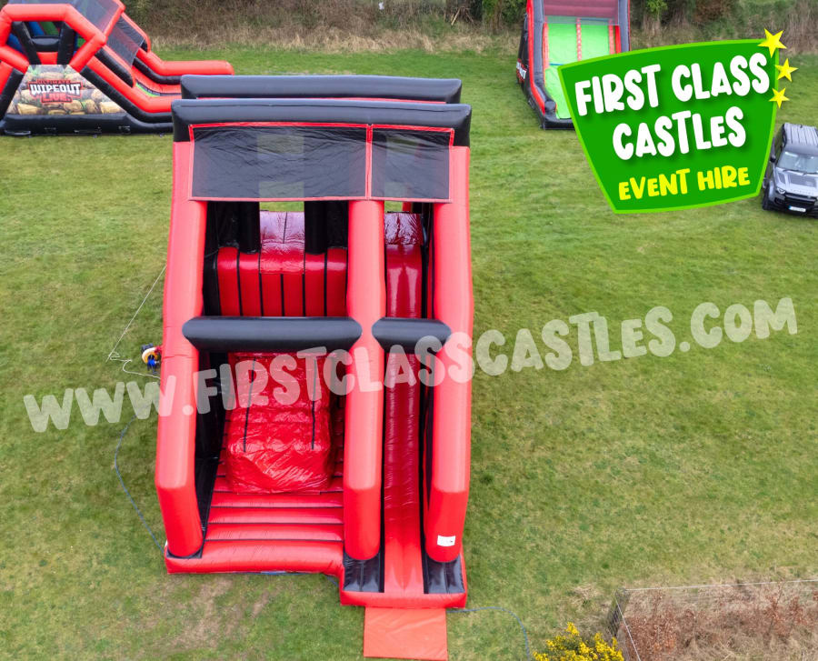 Power Requirements; We provide an electrical inflation device/ blower for this particular item, however, we do require you to provide 1x 240v mains supply (standard household socket) within 40mt of the area you require the item to be set up in. Should a power supply not be available we are able to supply a mobile generator for you by prior booking only. This particular item requires a 240volt/ 3.5kva generator. This item is high consumption. It requires 1x 240v 13amp sockets on its own 32 amp ring main for reliability. Items may work on less power but 100% uptime is likely but not guaranteed. Please contact us if you have any concerns.