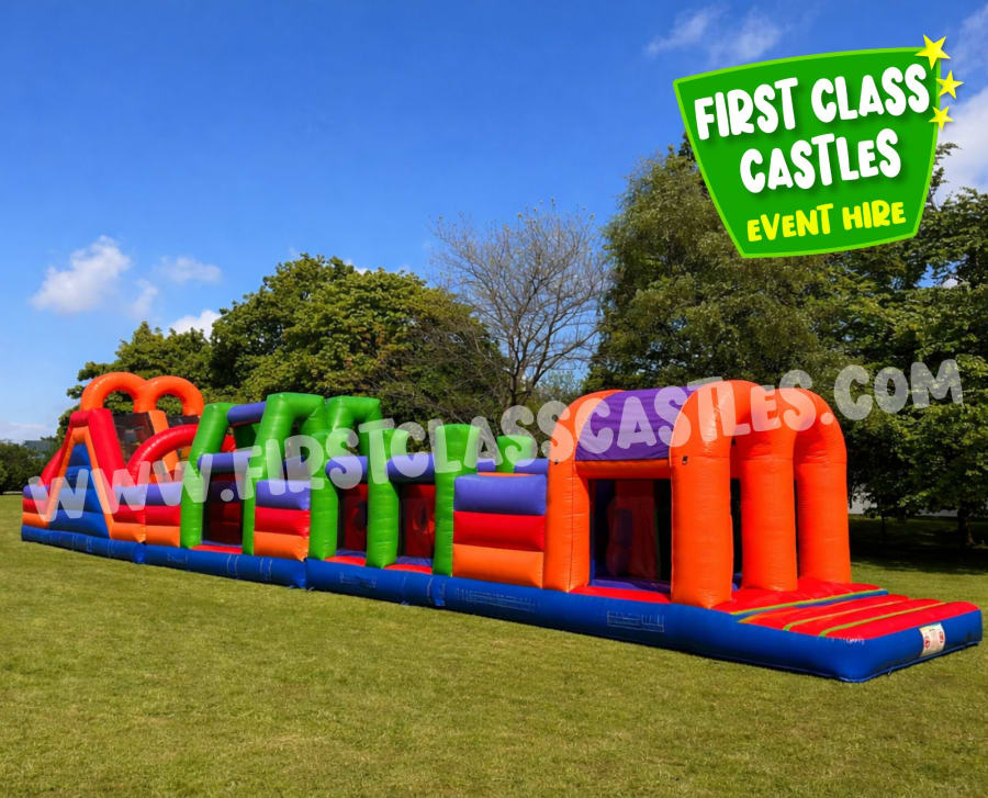 At an incredible 100ft long x 15ft wide, this mega inflatable obstacle course with slide is designed for head-to-head racing, relay challenges and Total Wipeout–style competitions, making it the ultimate centrepiece for high-attendance events.