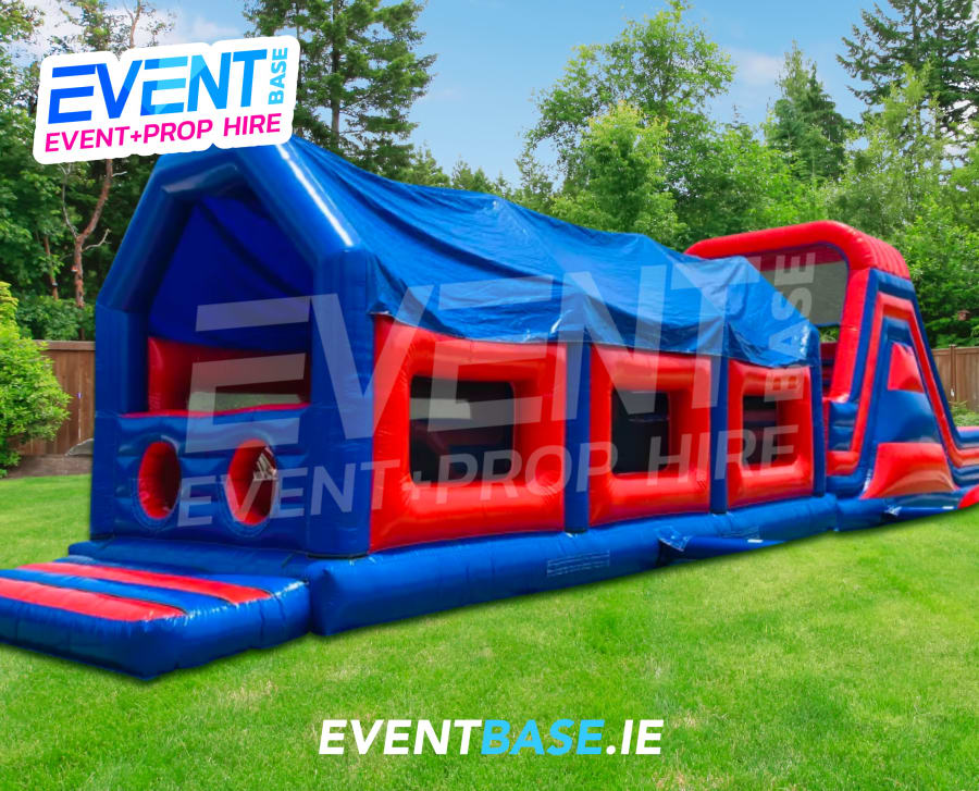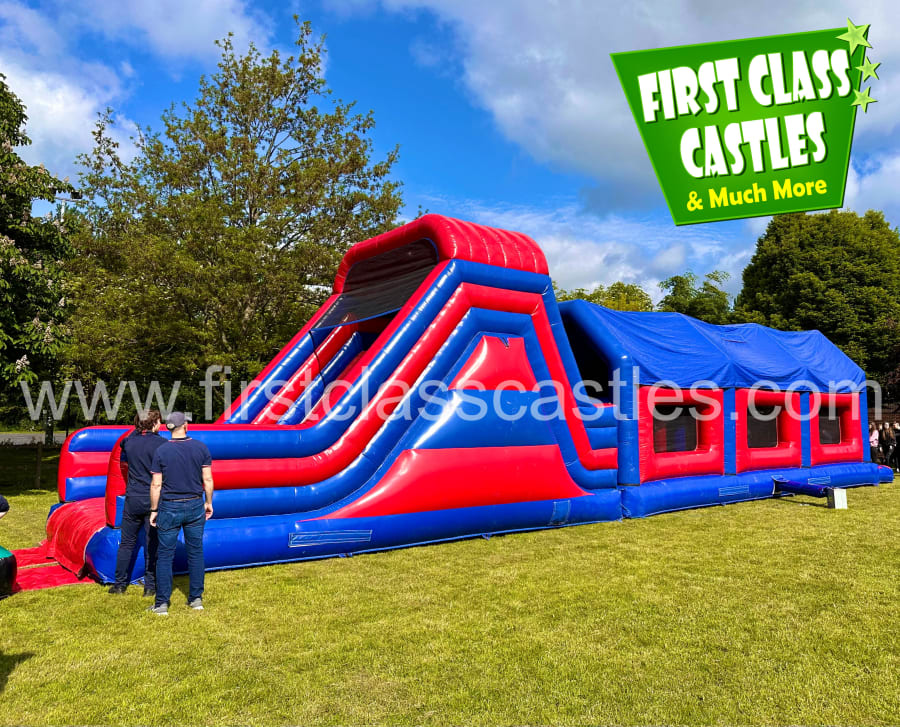 The whopping great obstacle course incorporates an up and over slide, biff and bash, and bouncing area, hurdles, whackers, biff and bash posts, mini humps, obstacle humps, crawl through tunnels and much much more!. Make your day with this unique, action-packed obstacle section. The inflatable obstacle course offers a safe entrance way, followed by a random series of obstacles including a series of biff and bash pillars, cool chill out area in the middle, hurdles and finishes with an adrenaline fuelled 10ft platform slide at the end. The obstacle course is the perfect choice for any children or adults event.