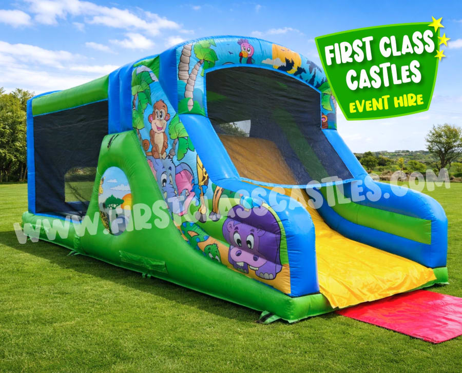 With its bright 3D jungle artwork, fully enclosed design and exciting obstacle layout, this unit is a huge hit at birthday parties, school activity days, crèches, community events and indoor hall hires.