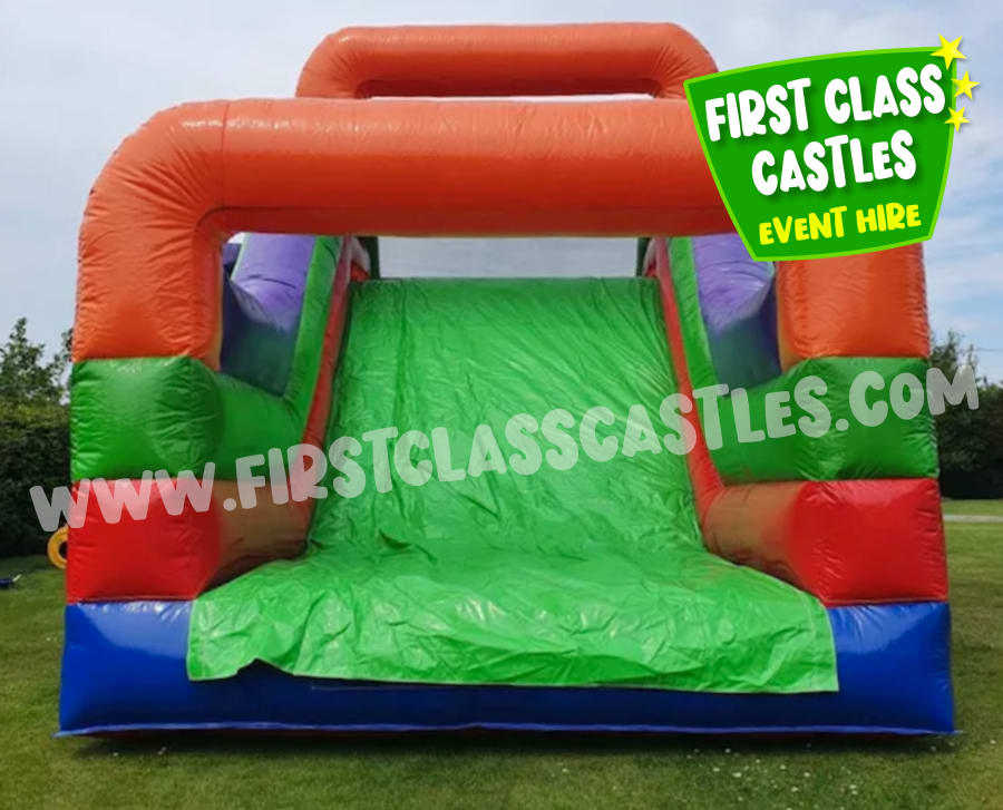 Please Note: A hand-truck is used to transport the slide from the delivery van to the set-up location. A minimum clearance of 4ft is required to transport this slide into your garden, it will not fit through a regular side gate. The slide cannot be lifted over walls or up steps due to the weight of the slide. It is the responsibility of the hirer to ensure adequate access is available when we arrive. If you have any queries please don't hesitate to contact us.