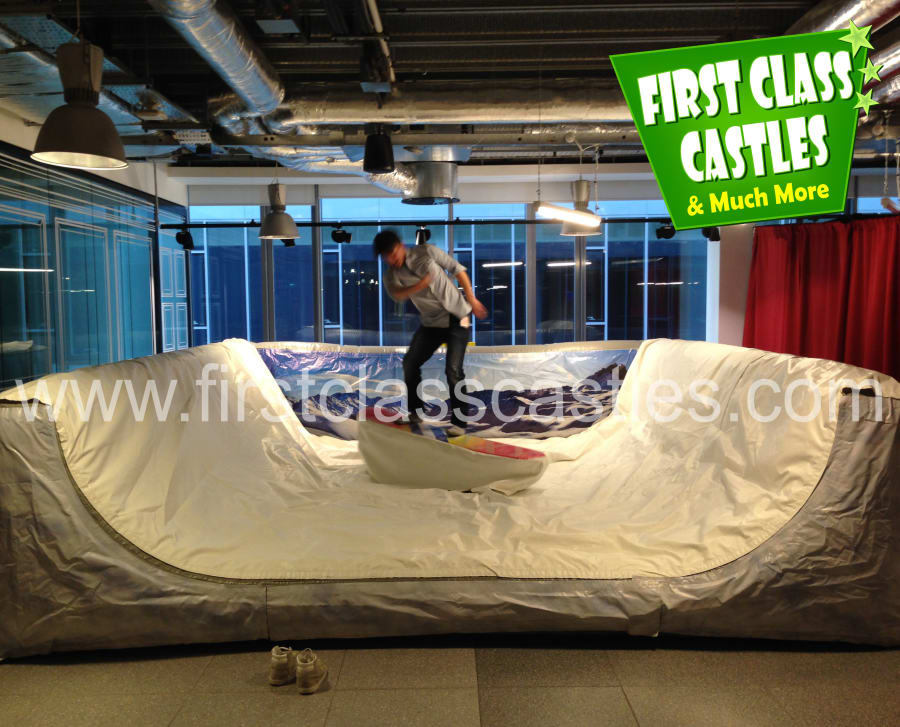 Like with all our Rodeo Rides, include an operator to supervised for the whole duration of your event. Our snow board simulator can be hired indoors & outdoors depending on weather and we require a minimum hight of 8ft to operate our rodeo surf board indoors. Inflatable canopy available for an additional fee for Outdoor events (mandatory from Sept to April)