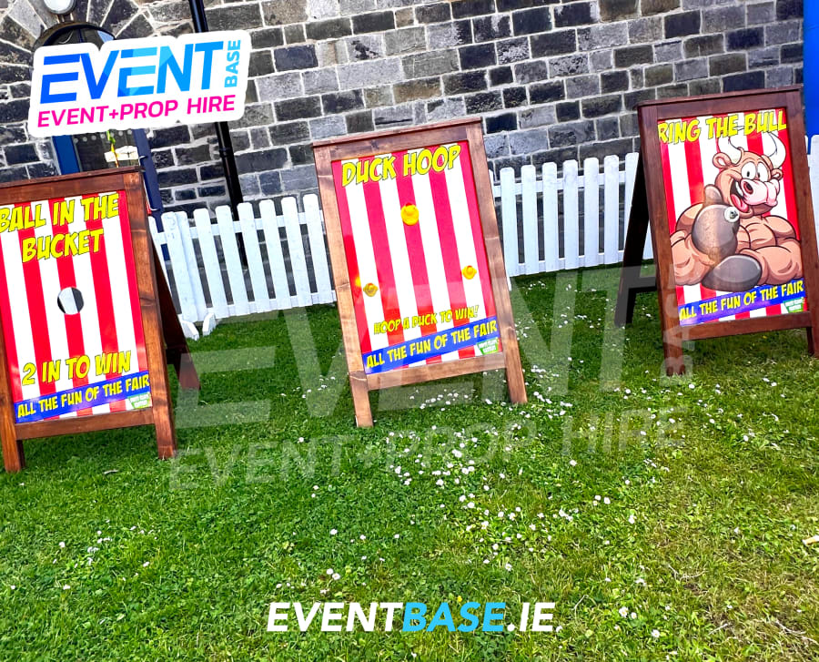 Description: You've already seen our cool red and white carnival games. Pick any three of our Carnival Games to create a discounted trio package. You can choose your three favourite games when you proceed to the booking form.
