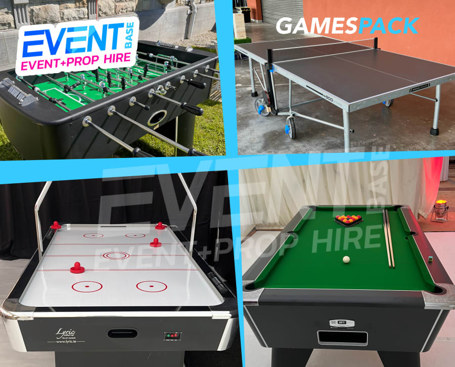 Description: Games Tables are a hugely popular and entertaining Games Hire item! We have created a set package of our most popular four table games, so you can create a custom Recreation or Games Space at your next Party or Corporate Event. You've already seen our very popular giant garden & party games, here we have selected our most popular games into a package option suitable for all types of events, indoors or outdoors (under cover for Pool & Air Hockey). This package includes our most popular four hire table games. This is the perfect event games table hire package and suits all types of private parties and corporate events.